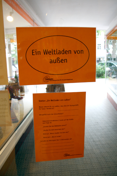 Der Weltladenbesuch dauerte ca. 75 Minuten und fand im Weltladen Osterstraße (Osterstraße 171, Hamburg-Eimsbüttel) statt. Dieser Besuch konnte im Anschluss an einen Workshop in der Schule als Vertiefung und Erweiterung des Gelernten erfolgen, aber auch als Einstieg in die Beschäftigung mit dem Fairen Handel dienen. Auf Anfrage können weiterhin Besuche im Weltladen Osterstraße durchgeführt werden (Anfragen bitte an Diese E-Mail-Adresse ist vor Spambots geschützt! Zur Anzeige muss JavaScript eingeschaltet sein.)