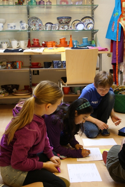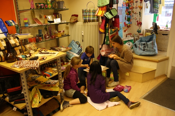 Bei einem Besuch in einem Weltladen konnten die Schülerinnen und Schüler an Lernstationen spielerisch den Fairen Handel kennenlernen und den Weltladen als besonderen Ort für nachhaltigen Konsum und faires Handeln erkunden. Sie erfuhren, was ein Weltladen überhaupt ist und welche Produkte es dort gibt, lernten seine Mitarbeiter/innen kennen und erlebten den Weltladen als Ort des Mitmachens. Methodisch setzten wir dabei - in leicht modifizierter Form - den vom Weltladen Dachverband erarbeiteten und erprobten Erkundungszirkel für Grundschulen ab Klasse 3 ein.
