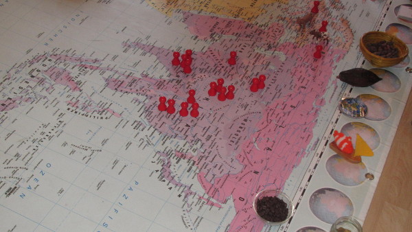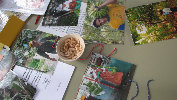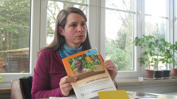 Zur Heranführung an den Fairen Handel boten wir kurze Unterrichtseinheiten mit den Schwerpunkten "Kakao und Schokolade" und "Bananen" für Grundschulen ab Klasse 3 an. Dabei setzten sich die Kinder spielerisch, altersgemäß und anschaulich mit Fragen nach der Herkunft unserer Nahrungsmittel und nach dem Leben der Menschen, die diese produzieren, auseinander. Beim Schwerpunkt "Kakao und Schokolade" reisten sie zu einem Mädchen nach Ghana und lernten das Leben auf Kakaoplantagen kennen. Hierbei setzten wir einige Materialien aus dem Bildungs-Bag "Schoko-Expedition ... zu Naki nach Ghana" vom Welthaus Bielefeld ein. Beim Schwerpunkt "Bananen" war das Ziel der Reise Ecuador, wo die Schülerinnen und Schüler ein Mädchen auf eine Bananenplantage begleiteten.